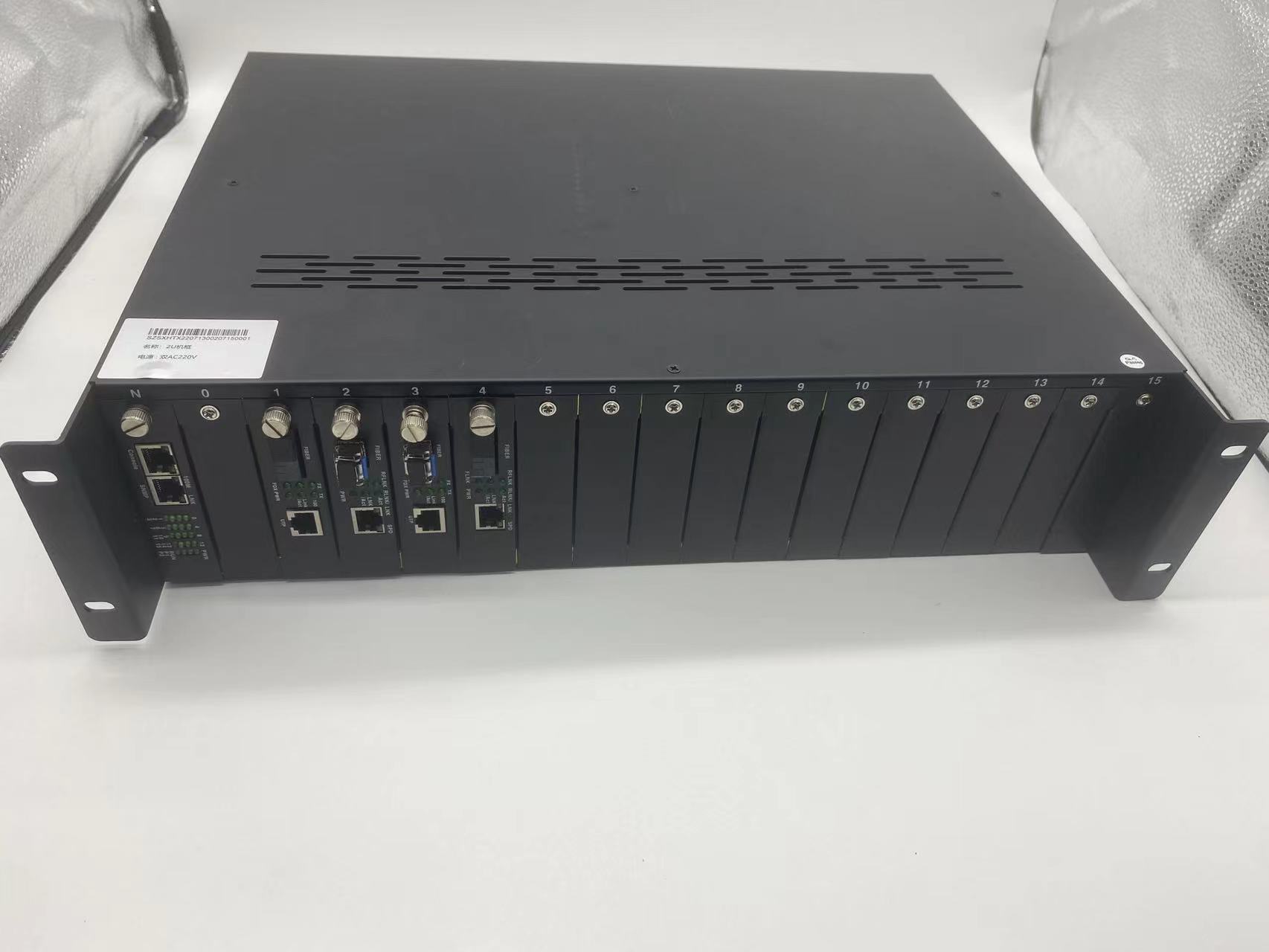 业务端口描述 | 可混插16块1光1电百兆光纤收发器、1光2电百兆光纤收发器或1光1电千兆光纤收发器;1块2U SNMP网管卡 |
